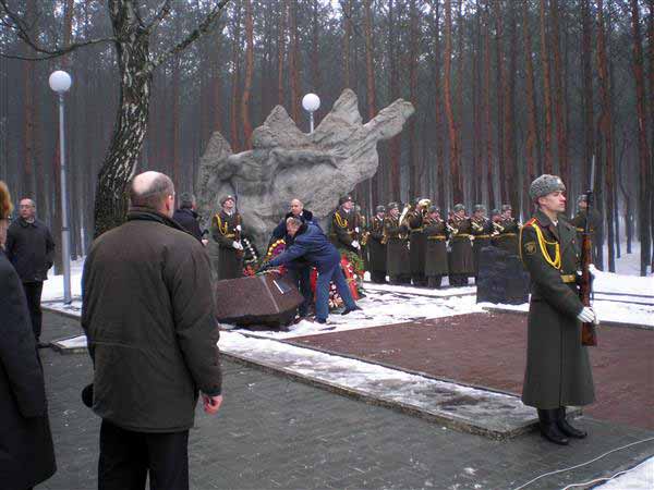 На фотографии справа показана торжественная церемония возложения венков к памятнику воинов-интернационалистов в г. Бресте по случаю 18-летия вывода войск из ДРА.