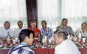 В г. Хабаровске встреча ветеранов БВТККУ тоже была "интернациональной" в плане годов выпуска. Но в отличие от других городов, здесь наши ребята оказались самыми организованными и многочисленными. Поэтому в этой встрече участвовало 12 ветеранов 1975 года и 2 ветерана других годов выпуска. Возглавлял встречу наш легендарный и неутомимый командир 3 батальона курсантов Каганский Борис Алексеевич. Местом встречи в этот раз стал китайский ресторан "Сянган".