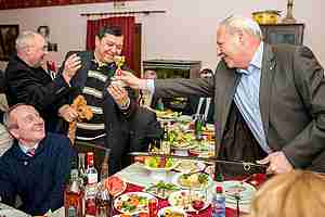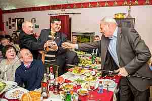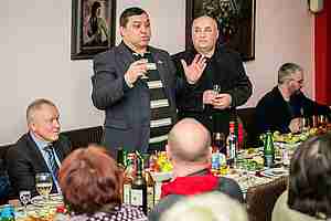 Здесь представлены фотографии, показывающие атмосферу торжественного мероприятия по случаю 60-летия ветерана БВТККУ (9 рота курсантов 1 взвод) Сергея Рапота, проживающего в г. Москва. Оно проходило в одном из местных ресторанов. В ходе встречи Сергею Рапота были торжественно вручены в качестве подарков "сабля подарочная" и "кубок 60-летия".