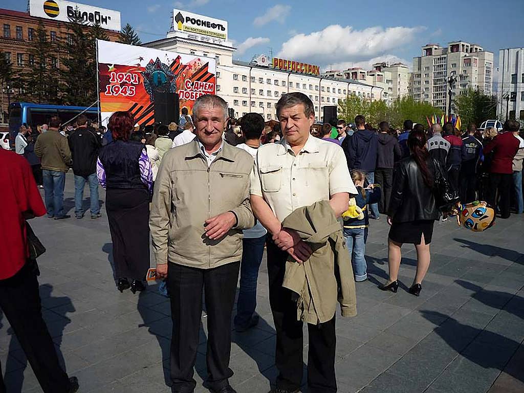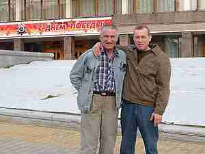 В вопросах совместного празднования Дня Победы наши "Хабаровчане" оказались самыми организованными. Возглавил встречу наш глубокоуважаемый командир Борис Алексеевич Каганский. День выдался яркий, солнечный и по-весеннему теплый. Кроме "Хабаровчан", на встрече присутствовал и специально приехавший для празднования из г. Артема Николай Лысенко. В ходе встречи произошел взаимный обмен поздравлениями и телефонное общение с ребятами из Артема.