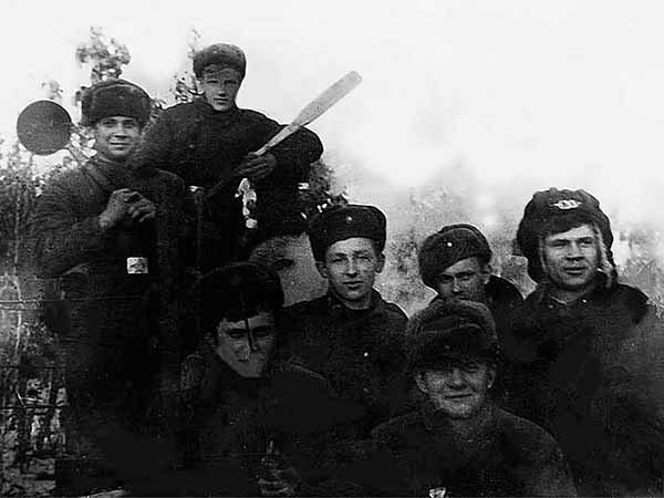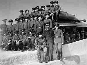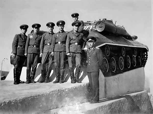 Командиры 8 роты курсантов. 1971 г. Внизу стоит командир роты капитан Кыштымов Ю.А., вверху сидит - командир 3 и 4 взводов л-нт Иванов С. В., стоят слева направо: командир 1 и 2 взвода - л-нт Муратов В., ЗКВ 1 взвода с-нт Волков С. А., ЗКВ 2 взвода с-нт Топюк И., старшина роты с-нт Богуш В. Г. и ЗКВ 4 взвода с-нт Павлов В. С.