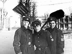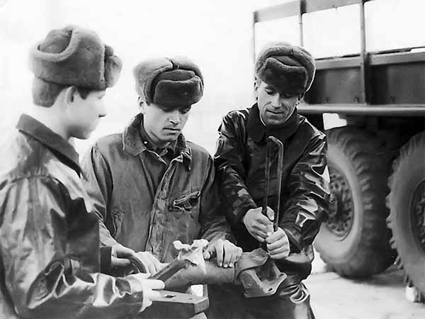 Ремонтируем автомобиль. Слева направо: Пахомов В. Е., я и Хренов Н. Н.