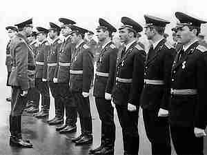 СГВ. Строевой смотр. Второй справа А. Саньков выпуска 1978 г. Я пятый справа.