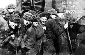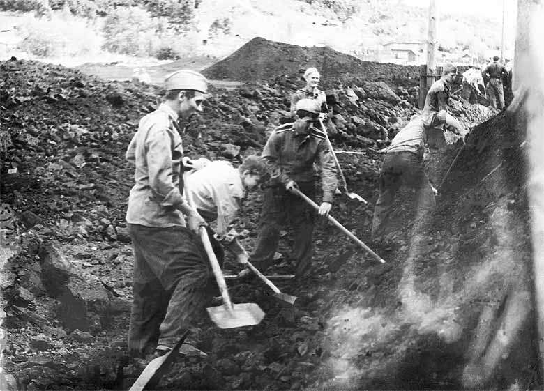 Подвозился уголь с помощью вагонетки по специальной узкоколейке. Вагонетка перемещалась курсантами вручную, вмещала около тонны угля. При этом она (особенно в нагруженном состоянии) постоянно сходила с рельсов и ее приходилось ставить опять вручную на рельсы. Уголь зимой часто был смерзшимся, поэтому его приходилось перед погрузкой на вагонетку еще и долбить железными ломами. И все это на 30-40 градусном морозе и, как правило, сильном пронизывающем ветре (в те годы зимы, как правило, были очень суровыми). Трудились, обычно, ночью. Часто работа затягивалась до утра. Одеты мы были плохо - в какие-то невообразимые лохмотья, бывшие когда-то комбинезонами (летними) и полушубками.