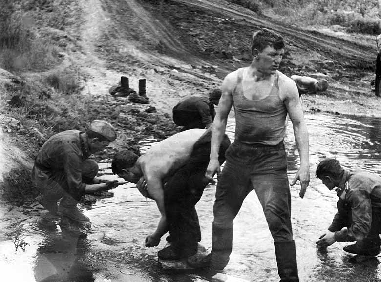 После работы все были черными от угольной пыли, но даже и помыться толком было нельзя. В нашем распоряжении были только краны с ледяной водой в умывальнике казармы или речка Переплюевка (ручей Буяновский) - летом. Если мы успевали поспать ночью 4 часа, то занятия на следующий день проводились в плановом порядке. Если же с работы приходили утром, то занятия на несколько часов переносились.