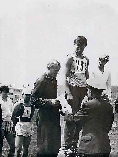 На пъедестале почета. Я на третьем месте, первое занял Владимир Бражников.