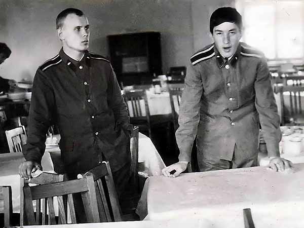 В курсантской столовой. Слева я, справа - Михаил Погодаев.