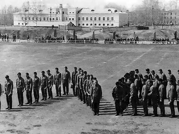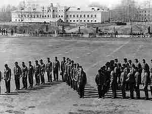 Построение 7 роты курсантов перед казармой