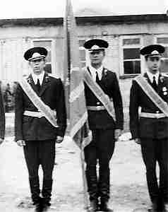 Курильские острова. Моей воинской части вручили Знамя. Я слева.