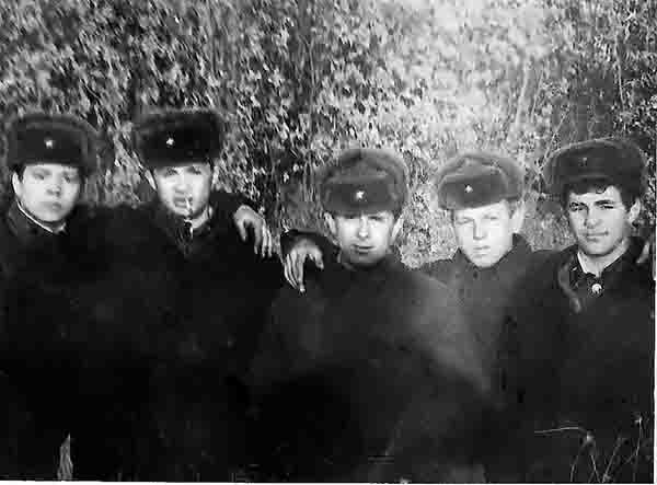 Хабаровчане нашего взвода. Я, Владимир Ткаченко, Валера Неретин, Евгений Громов и Владимир Каргин