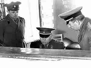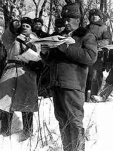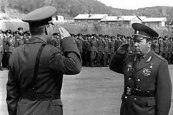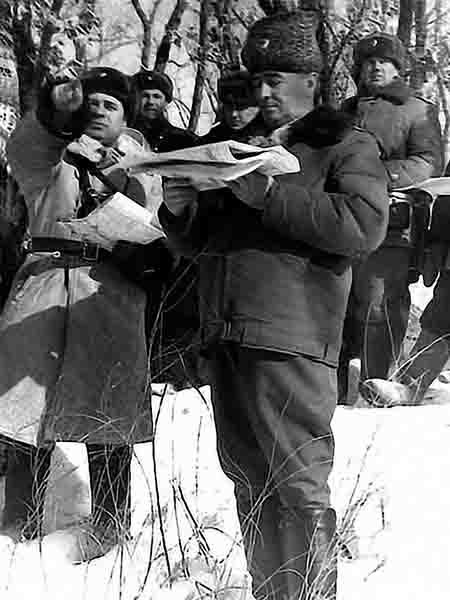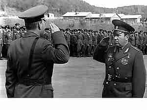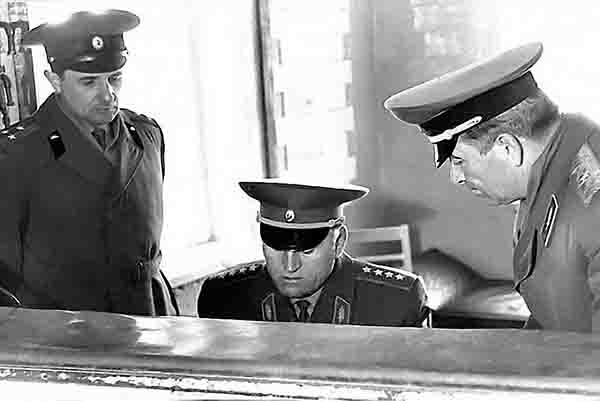 Начальник БВТККУ, генерал-майор Бойко П.Я. докладывает Герою Советского Союза генерал-майору Ульянову В.А.