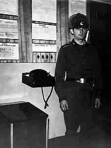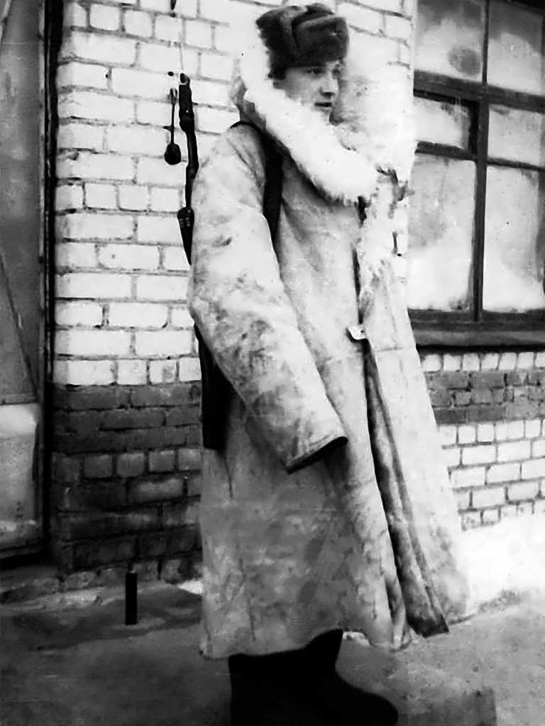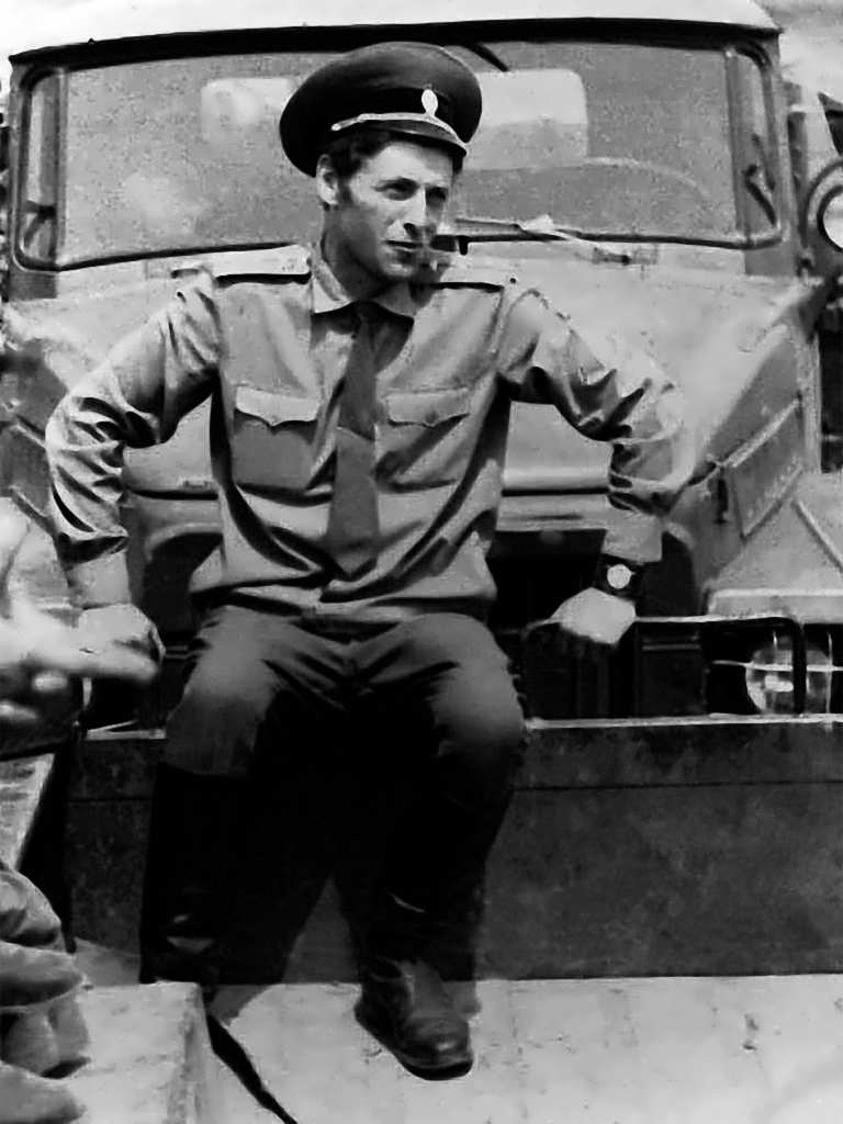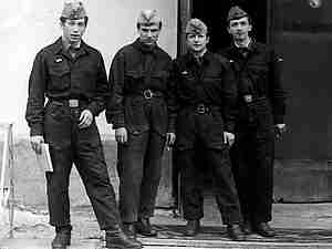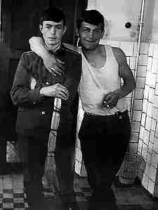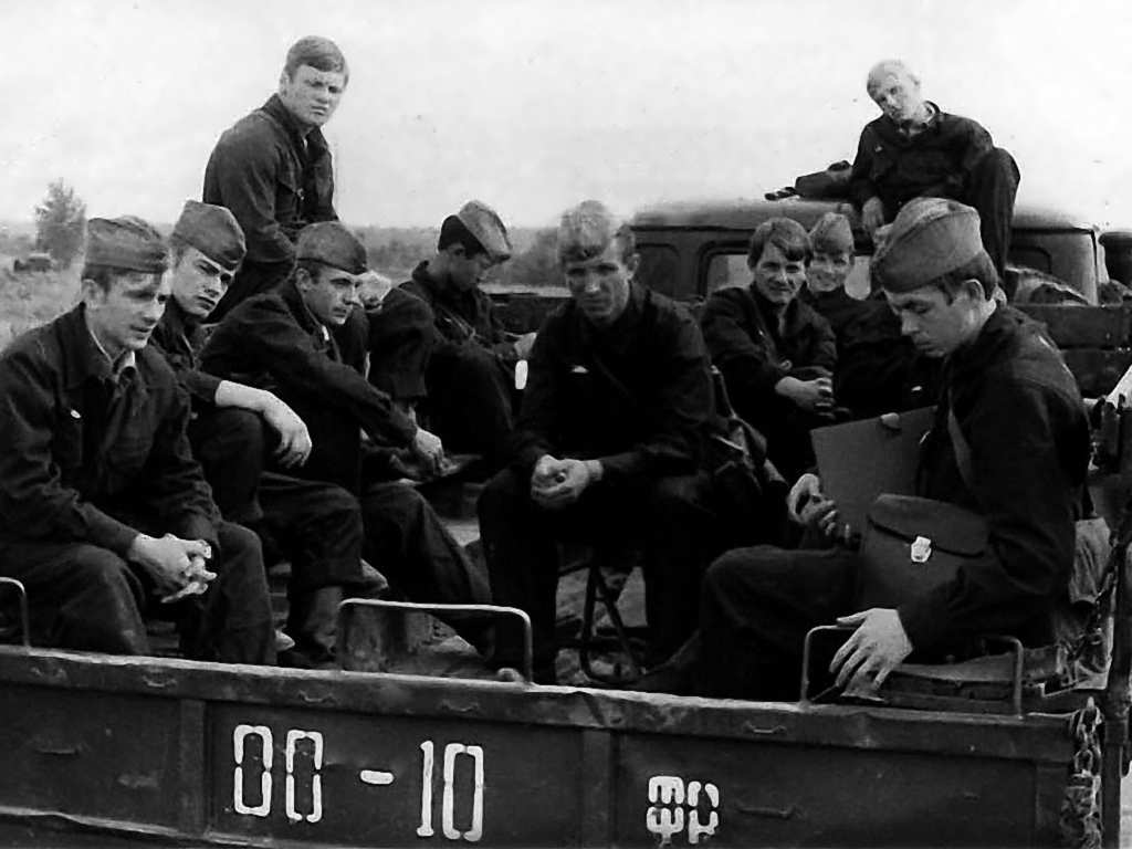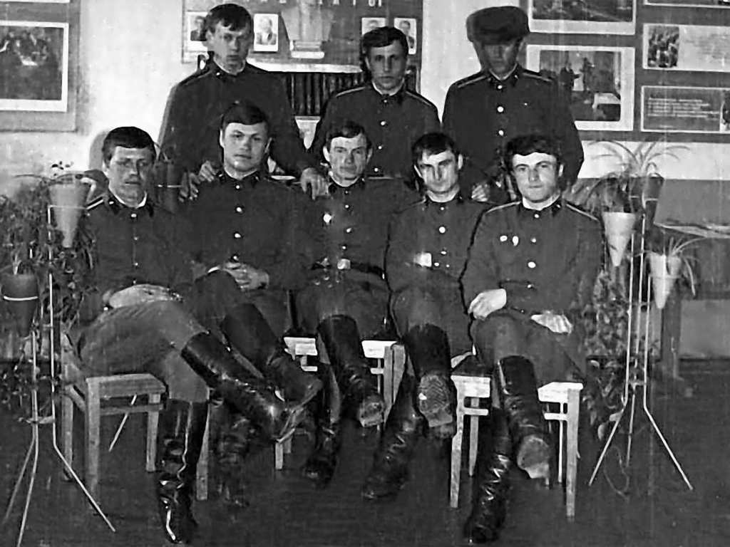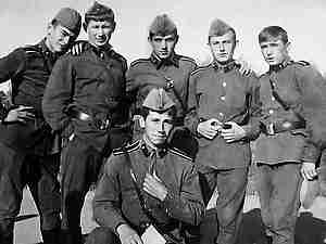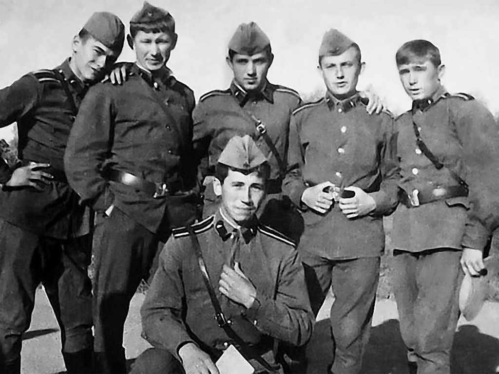 У входа в казарму. Ушнурцев В. Ф., Павлов В. С., Белашко В. В. и Коньшин В. Н.