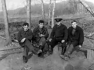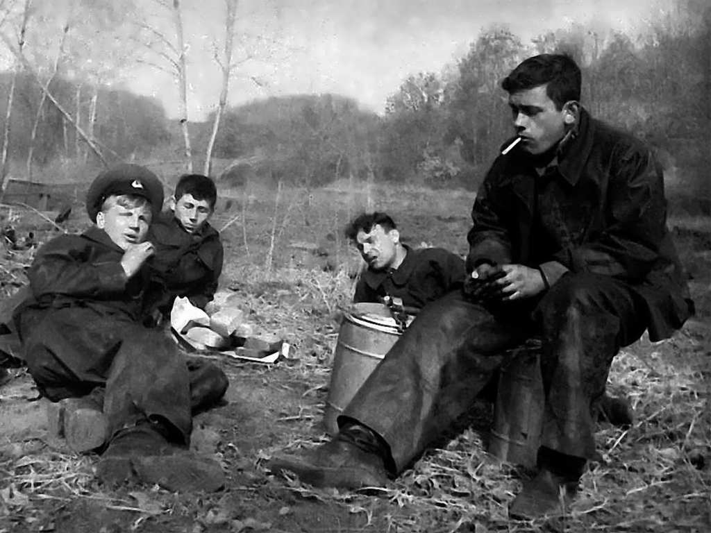 Перекур после обеда. Слева направо: Варламов А. М., Ушнурцев В. Ф., Павлов В. С. и Широков П. Л.