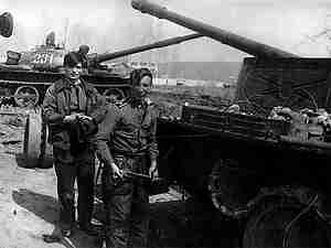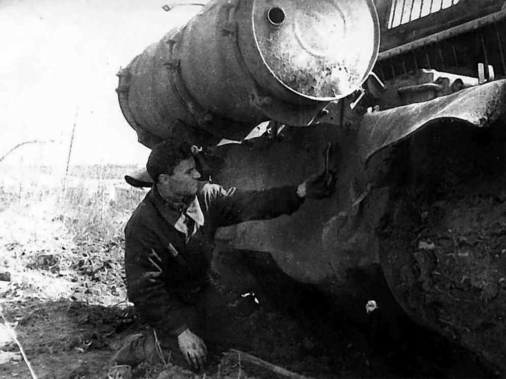Ремонт танка в полевых условиях. В центре - Павлов В. С., слева - Широков П. Л.