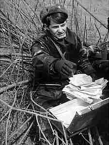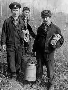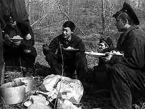 Обед с полевой кухни. Слева направо: Коньшин В. Н., Широков П. Л. и Белашко В. В.