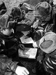 4 взвод 8 роты: Слева направо - Ривкинд Н. М., Трухин М. А., Граппов С., Супрун Н. М., Сутырин М. В. Снизу - Ушнурцев В. Ф.