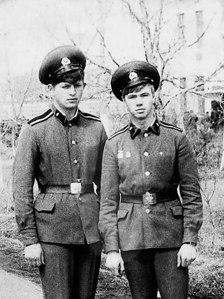 Александр Горбунов (слева) и я (справа) у казармы в БВТККУ.