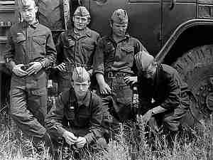 Будующие полководцы на трибуне... Слева направо: Василенко В. С., Неваленный А. Н., Замятин С. П., Свиридов А. В., Косогоров А. В., Кукарин Е. В., Супрун Н. М.